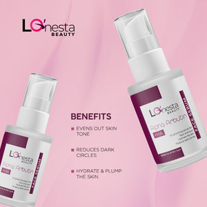This serum improves the skin tone by distributing melanin and fades all kind of spots. Additionally HA provides conditioning and stretches the skin to minimize wrinkles and fine lines.